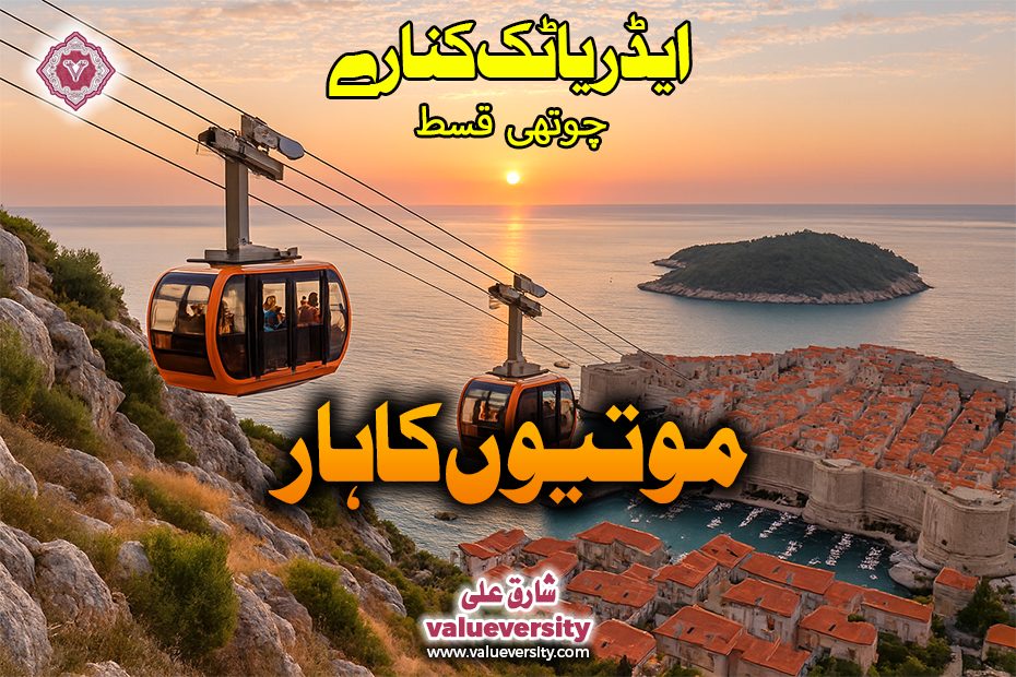 بلندی کے ساتھ مناظر بدلتے گئے۔ اب ایڈریاٹک سمندر کی نیلی چادر افق تک پھیلی دکھائی دے رہی تھی۔ اس کا رنگ ہلکا سبز اور پھر گہرا نیلا تھا، جیسے کسی نے پانی میں نیلم گھول دیا ہو۔ بائیں جانب سمندر میں ایک خوبصورت جزیرہ نظر آیا — لوکرم (Lokrum Island)۔ سرسبز درختوں میں لپٹا یہ جزیرہ جیسے کسی کہانی کی کتاب میں اچانک نمودار ہوا کوئی کردار۔